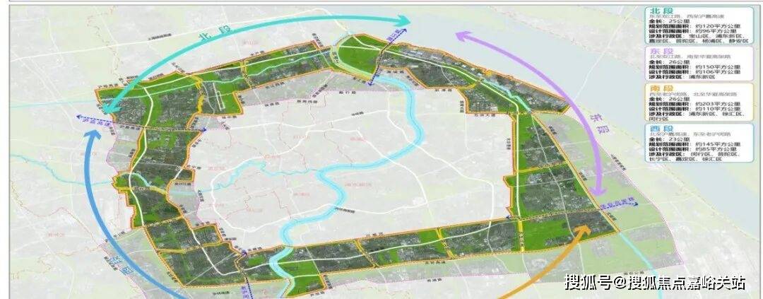 2020 年 7 月浦东新区政府发布了“金色中环发展带”的“十四五”规划方案,浦东新区地界内重点穿过3+5个重点区域,三个中心区:前滩中央活动区、张江副中心、金桥副中心;五个潜力地区:沪东船厂、张江集电港、御桥区域、新杨思地块(高青区域)、筠溪小镇(三林区域)。成效明显,初步目标以达成。