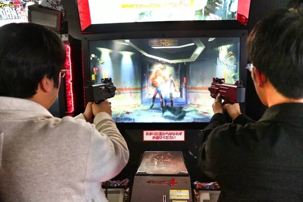几年后,在家用机上比不过任天堂的世嘉转而动了街机光枪的念头,比较有代表性的如3D射击游戏《VR特警》、《死亡之屋》,用的是如今电玩城常见的那种大个头框体。