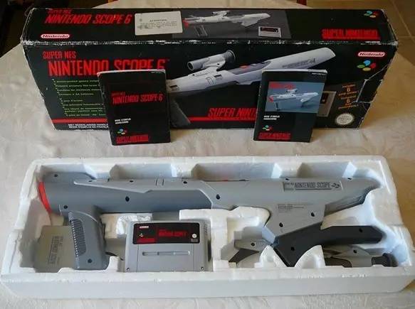 到了SFC的年代,任天堂发“Super Scope”,因为外形就像是个火箭筒一样,被玩家赋予了“冲天炮”美名。