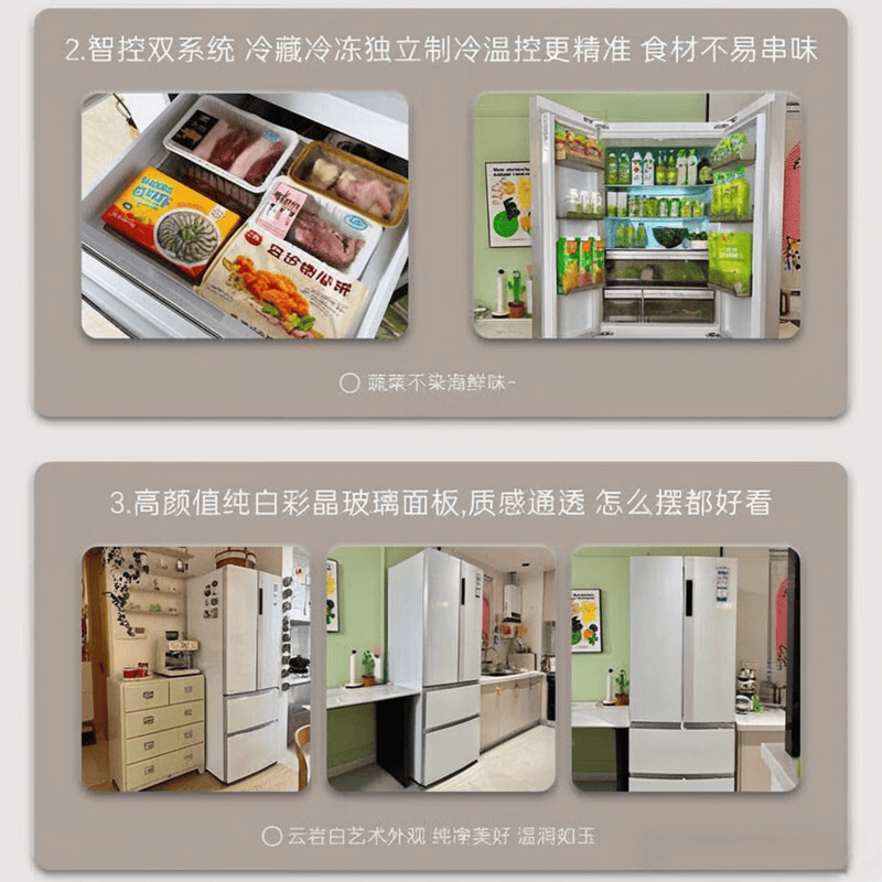 选购建议:这款冰箱尺寸是594mm超薄,嵌入橱柜里不占地方,而且面板是钢化玻璃,好打理。如果你家空间有限,或者想要一台高颜值、高功能的冰箱,这款BCD-518W绝对值得你考虑。记得看清楚尺寸和容量,确保它能完美嵌入你的橱柜哦!