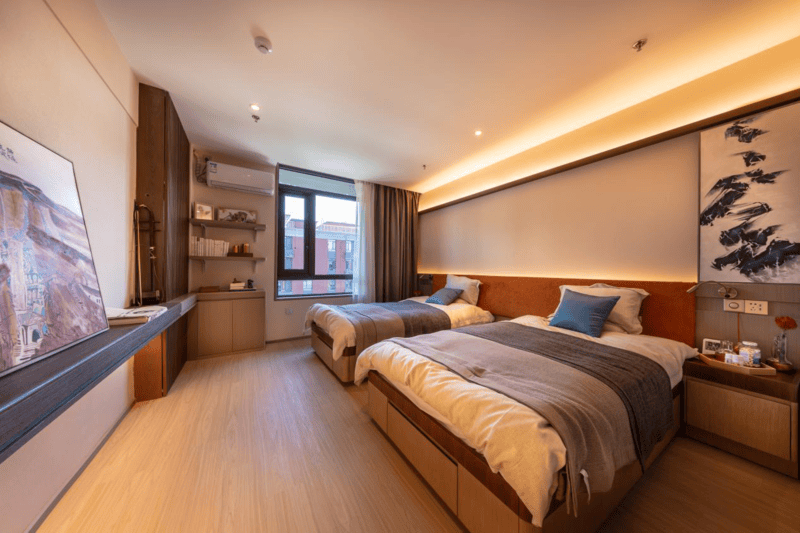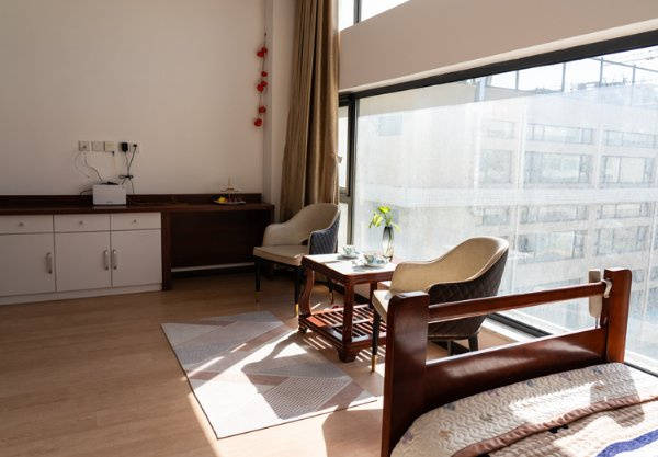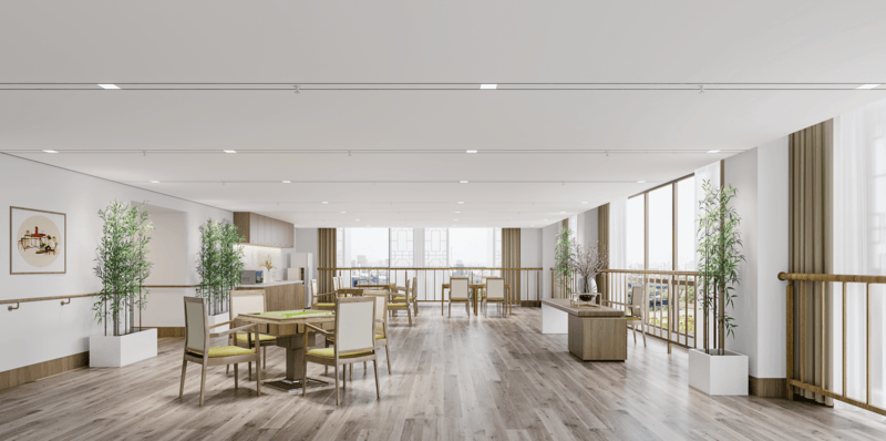 公共区域配套齐全,配备餐厅、文化娱乐室、医疗室、心理慰藉室等,全方位满足长辈的日常生活、医疗、娱乐、心理需求。文化娱乐室内有棋牌桌、图书角、书法台等,长辈可以在这里下棋、看书、练书法,丰富日常休闲时光;医疗室内配备专业的医疗设备和医护人员,为长辈提供全方位的医疗服务,让长辈在享受四合院风情的同时,也能获得专业的健康守护。