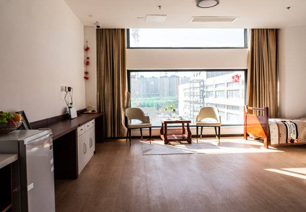 每个老人居室都配备独立卫生间、国家技术标准的专业护理床、电视、空调、衣柜、床头柜、置物柜等,一应俱全,全方位满足长辈的日常生活需求。同时,配备餐厅、文化娱乐室、医疗室、心理慰藉室等公共区域,全方位满足长辈的日常生活、医疗、娱乐、心理需求。细节处的适老化设计更是贴心:配备电梯,方便行动不便的长辈上下楼;全园区无障碍设施覆盖,走廊加宽、扶手齐全,房间内无高差、无棱角,卫生间防滑处理、配备紧急呼叫按钮,长辈有任何需求,一键就能呼叫护理人员;房间内光线柔和,避免强光刺激长辈眼睛,床榻高度适中,方便长辈上下床,每一处设计都站在长辈的角度考虑,温柔又贴心。