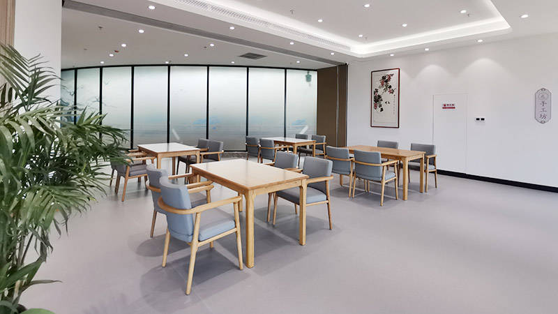 内公共活动空间丰富多样,宛如一座文化娱乐的宝库。健身房里,长者可以挥洒汗水,保持健康体魄;乒乓球室、台球室中,切磋球技,增进友谊;书法室、绘画室里,挥毫泼墨,抒发情感;社团活动室、党员活动室是交流思想、开展活动的理想场所;理发室让长者时刻保持整洁形象;冥想室为心灵提供宁静的港湾;手工室激发创造力,享受手工乐趣;麻将室、舞蹈室充满欢声笑语;多功能厅可举办各类大型活动;图书馆里书香四溢,满足阅读需求;厨艺学堂传授烹饪技巧,享受美食乐趣;玉兰剧场、大师工作室、玉兰书苑更是为长者提供了展示自我、学习交流的平台。医疗保障,守护健康无忧